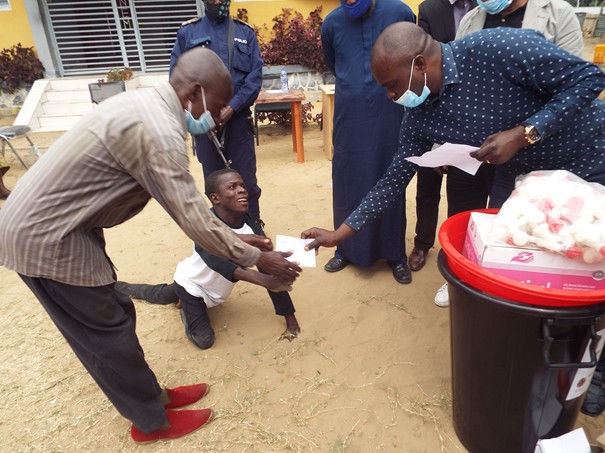Lors de cette remise symbolique, le prêtre s’est joint aux deux bourgmestres et au représentant de Cafod (Caritas du Royaume Uni) en RDC, monsieur Bernard Balibuno Kateta, pour remettre un seau ou tel autre objet qu’ils devaient donner aux deux bourgmestres afin de le destiner à leur tour à chaque vulnérable ou au membre de sa famille l’ayant accompagné. Le Projet « Assistance économique aux familles vulnérables de Kinshasa pendant l’épidémie de Covid-19 » est financé par l’Eglise de Jésus-Christ des Saints des Derniers jours par le biais de Cafod ou Catholic Agency for Overseas Development. Caritas Congo Asbl exécute ce projet, d’une durée de deux mois, dans le réseau catholique avec le Bureau Diocésain des Œuvres Médicales (BDOM) Kinshasa et la Diaconie de l’Archidiocèse du même nom. Un autre partenaire de Caritas Congo Asbl et de Cafod dans ce Projet est l’Ongd UJCC.