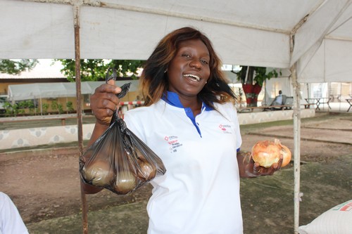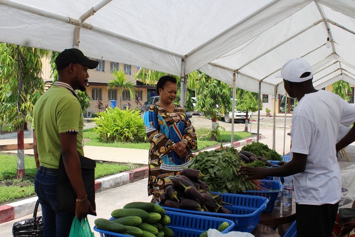 Ils ont exposé des produits agricoles ci-après : les sacs de maïs, les légumes, les fruits, les jus de fruits, l’huile de palme, des ingrédients pour la cuisine, le détergents, les médicaments à base de plantes.